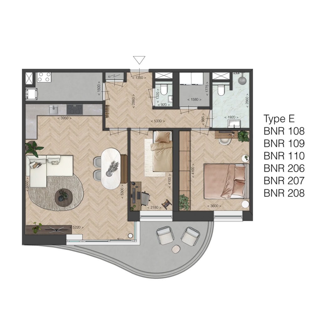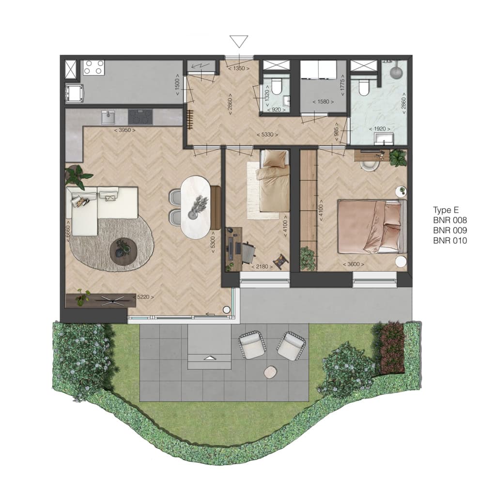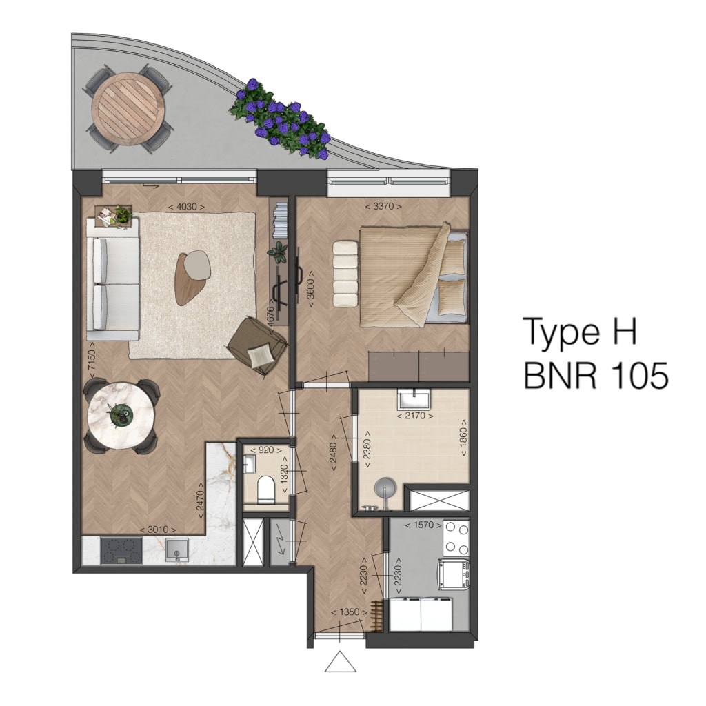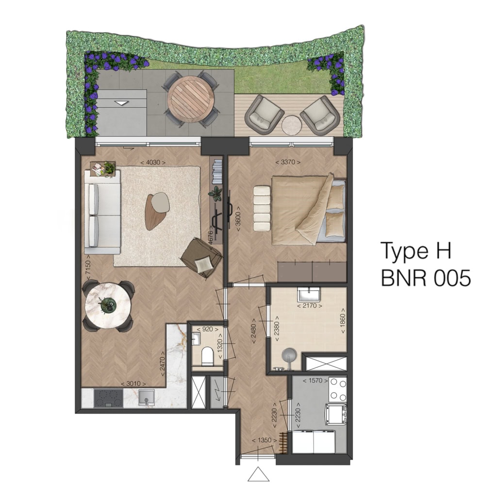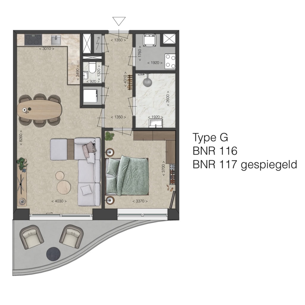 Fijn, compact en efficiënt ingedeeld, met een ruime woonkamer en mogelijkheid voor een open keuken, met toegang tot de buitenruimte. Ideaal voor kleine huishoudens die comfort zoeken zonder concessies. De ligging van de buitenruimtes ligt op het noorden, m.u.v. bouwnummer 116 en 117, deze liggen op het zuiden.
