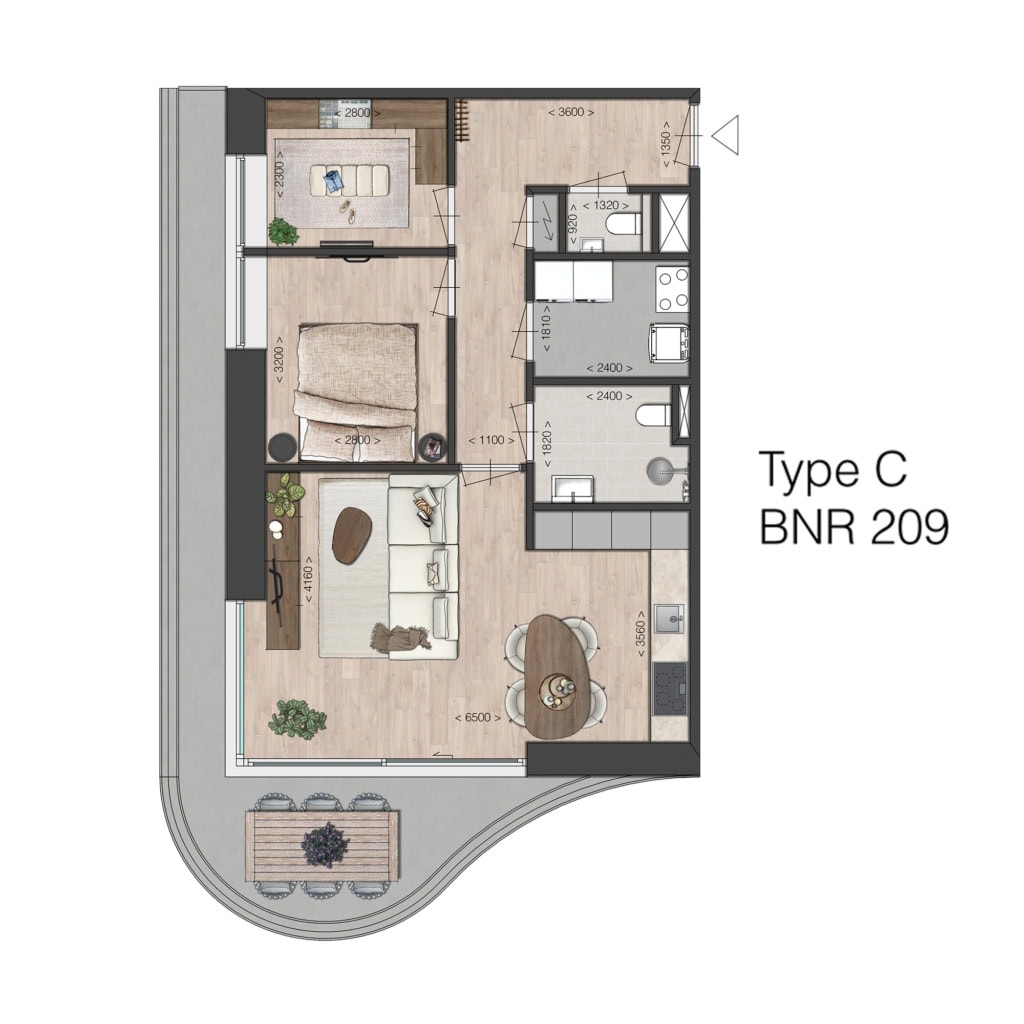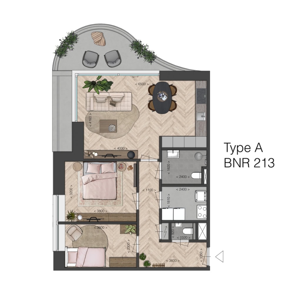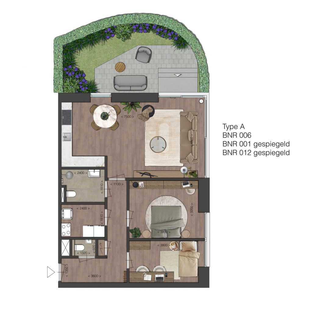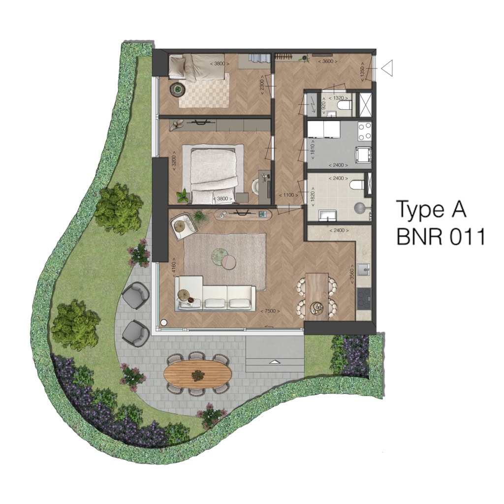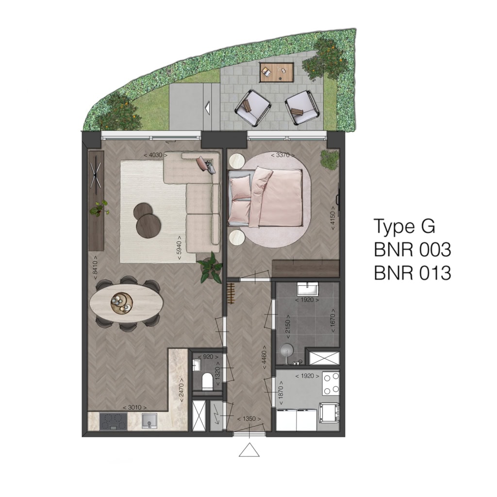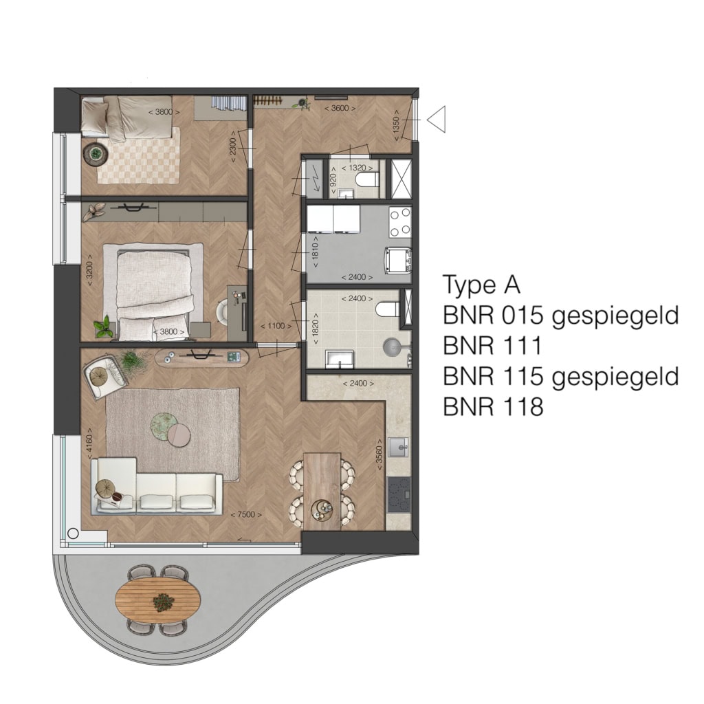Fijn, compact en efficiënt ingedeeld, met een ruime woonkamer en mogelijkheid voor een open keuken, met toegang tot de buitenruimte. Ideaal voor kleine huishoudens die comfort zoeken zonder concessies. De ligging van de buitenruimtes ligt op het noorden, m.u.v. bouwnummer 116 en 117, deze liggen op het zuiden.