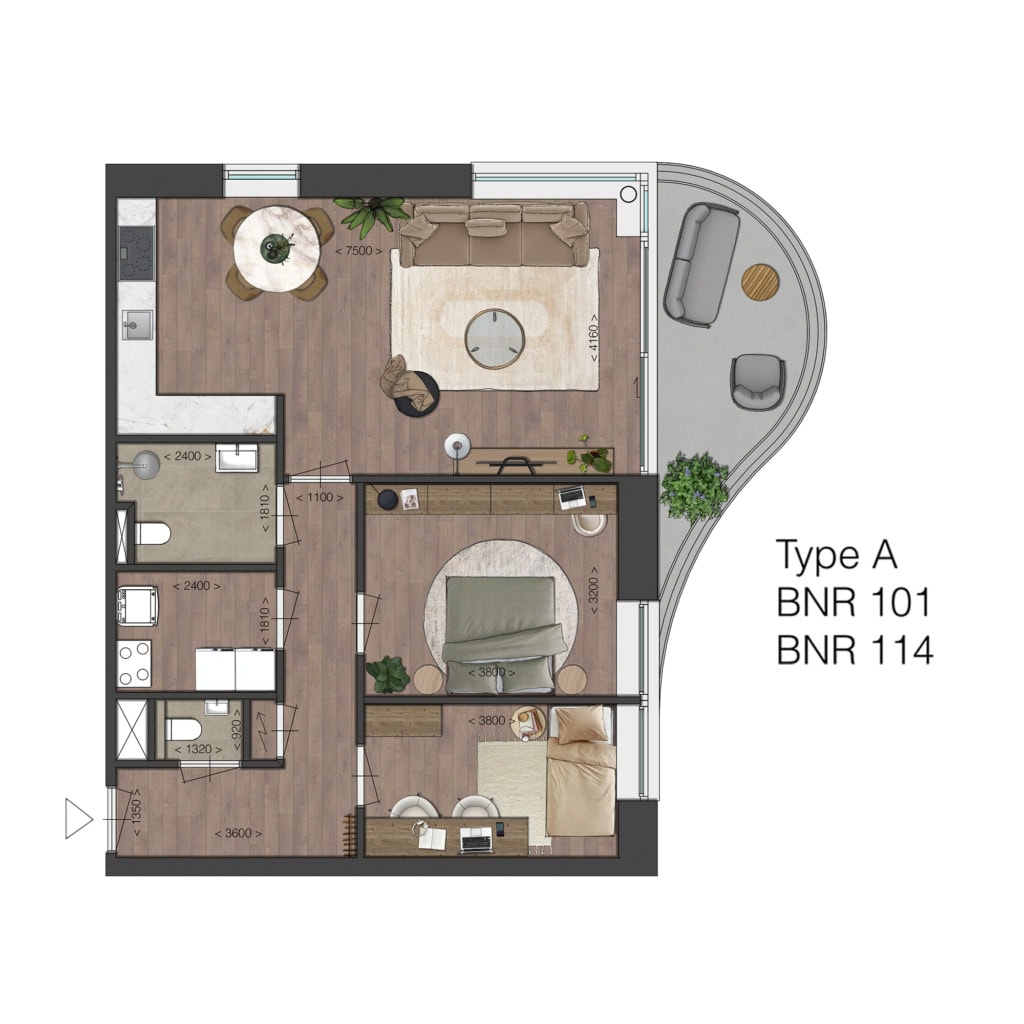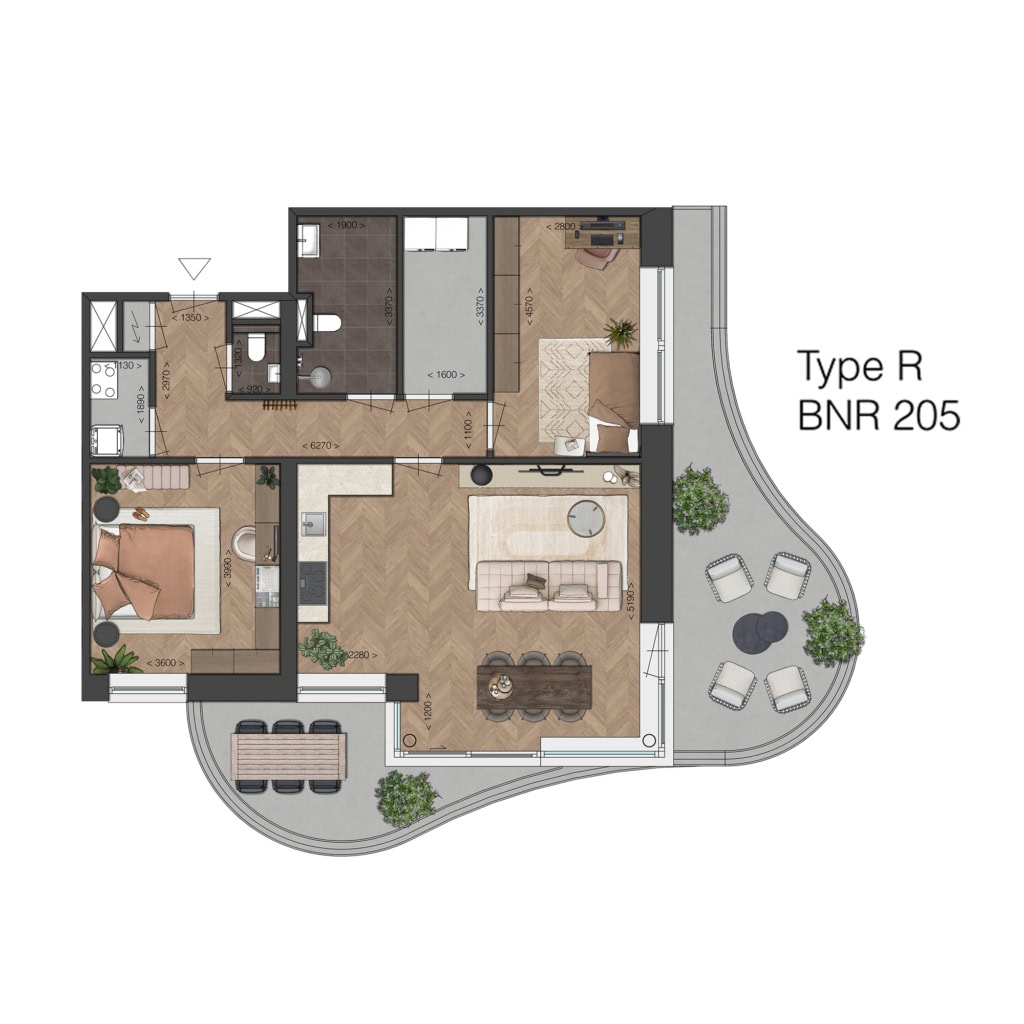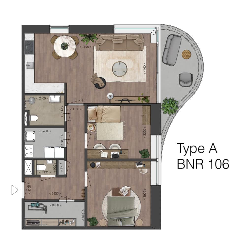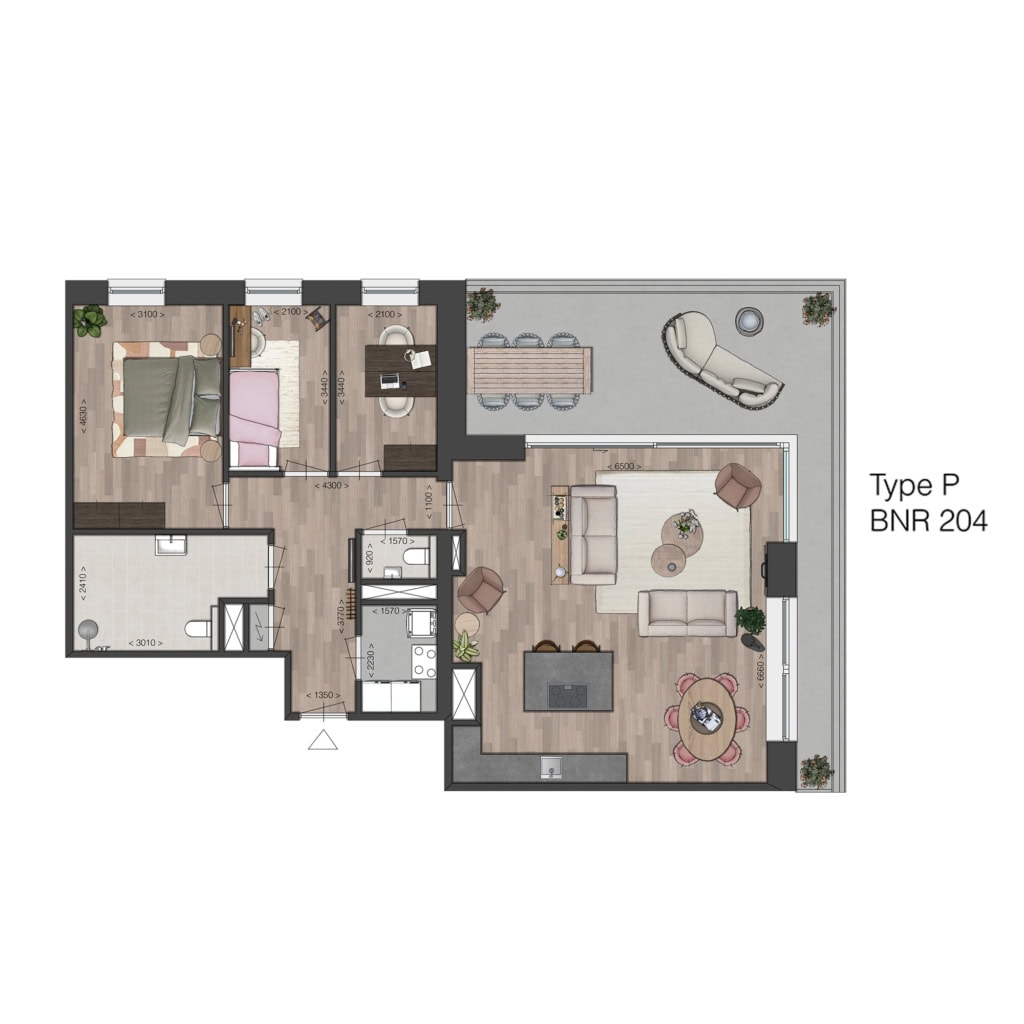Deze vierkamer-appartementen op de 1e of 2e verdieping vallen op door het grote, zonnige balkons van respectievelijk 15 of 28 m2, gericht op het noordwesten. Een buitenruimte die voelt als een verlengstuk van de woonkamer.