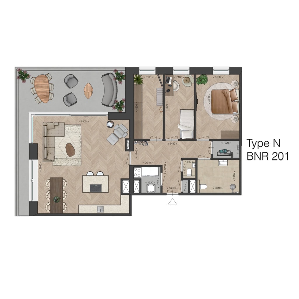 - Woonoppervlakte tussen de 95 en 108 m2