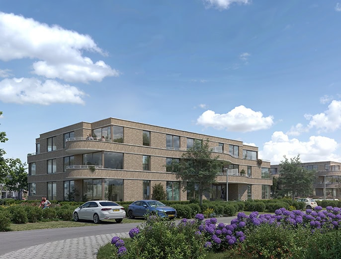 De Groene Traverse bestaat uit twee eigentijdse woongebouwen van elk drie woonlagen, zorgvuldig ingepast in een groene setting. De architectuur sluit aan bij de omgeving en ademt rust en kwaliteit.